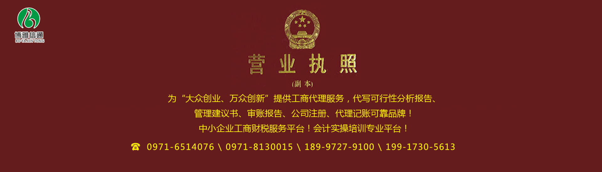 北京博雅信通會計服務有限公司西寧分公司為各中小企業(yè)提供各種專業(yè)工商財稅會計服務。包括公司設(shè)立籌劃、公司注冊、執(zhí)照變更、代辦注銷、代理記賬報稅、亂賬整理、會計實操培訓、會計職稱培訓(會計取證培訓)等一站式服務體系,誠信、專業(yè)、高效、省心! 公司簡介: 北京博雅信通會計服務有限公司西寧分公司 成立于2003年,積累了幾十個行業(yè)工商財稅會計服務經(jīng)驗,主要提供公司注冊、執(zhí)照變更、企業(yè)注銷、工商年報、代理記賬、納稅申報、會計培訓、財稅顧問等一系列服務。全程工商財稅老板們甩手我們代理,并且用足用好工商財稅優(yōu)惠政策,讓企業(yè)老板省心、省時、省事兒!節(jié)約會計核算和納稅成本,解放您的寶貴時間抓好企業(yè)經(jīng)營,做您的...